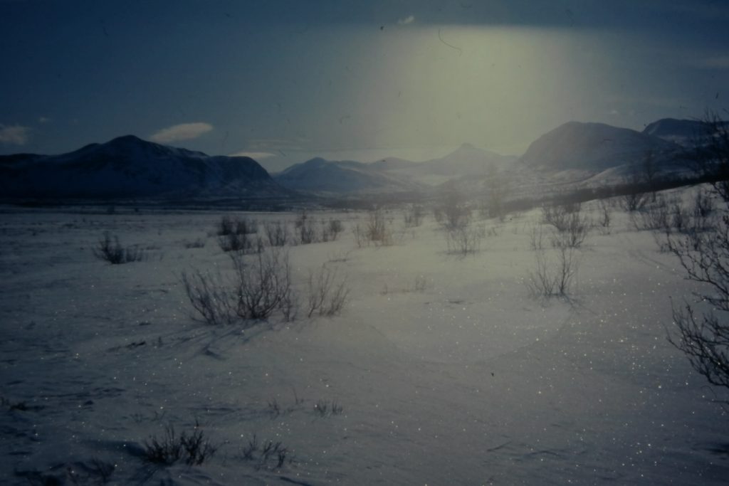 Ved femtiden, kjære leser, la vi ut på dagens siste 15-20 km. Sola gikk etterhvert ned, det ble skumt, vi var i hjertet av Rondane med topper over 2.000 meter rundt oss. Det blåste, men bakken var dekket av hard snø med et lag ny styresnø oppå. Stjernene dukket frem og vi begynte å gå over Rondvatnet, en langsmal tarm i en dyp kløft midt i huldrefjellene Rondane. Her har trollet kylt øksa i bakken så fjellet revnet par-tre kilometer.