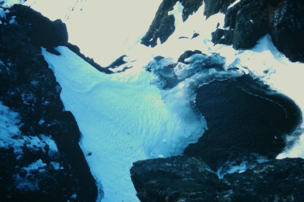 Sola steg opp i øst og vi steg opp i høyden sydover mot Rondane. Etter noen timer i sol og vind kom vi nedover et skar. En elv rant i bunnen av den smale dalen med brune fjellsider i hellingene. Men der stod vi plutselig, på kanten av et høyt stup, elven kastet seg utfor og fjellsidene hang ned på hver side. Et forsøk på å granske forholdene førte bare til vanskeligheter med å klatre bort til sekkene igjen.