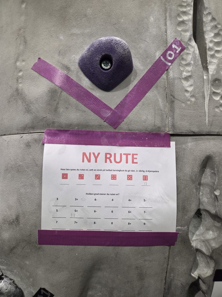På denne veggen trener vi på å lede ruter hver gang.