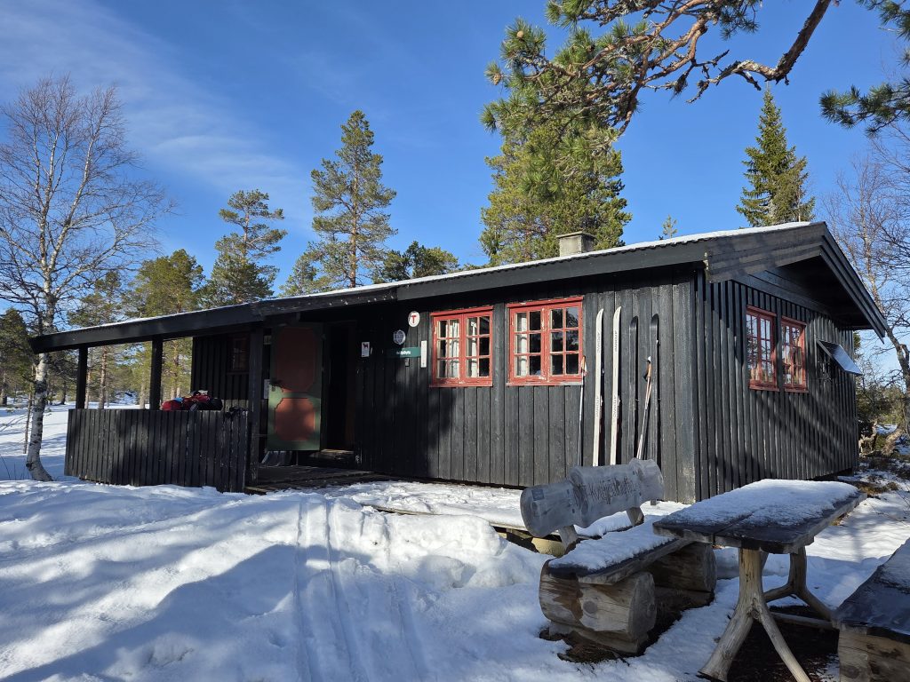 Prestøyhytta like rett innenfor grensa til Skarvan og Roltdalen nasjonalpark