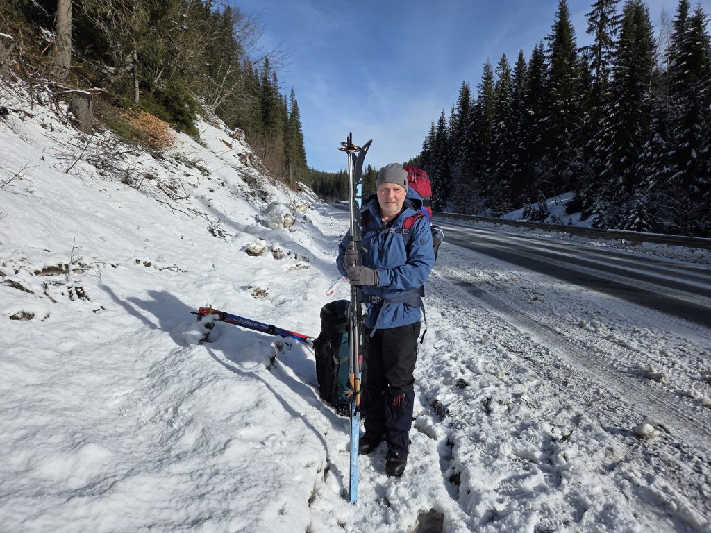I veikanten forbi skisenteret. Her ble vi satt av bussen, som ikke stanset fordi vi ikke hadde trykket på stoppknappen (!)