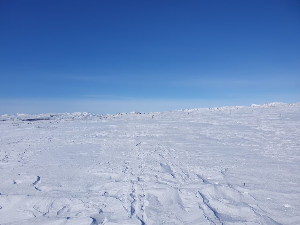 Vel oppe på flatene kom det en kald vind fra Blåbreen som gjorde at vi etterhvert fikk på mer klær.
