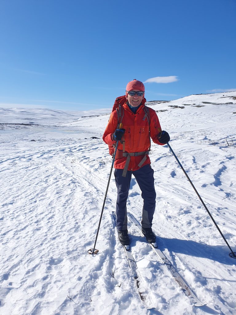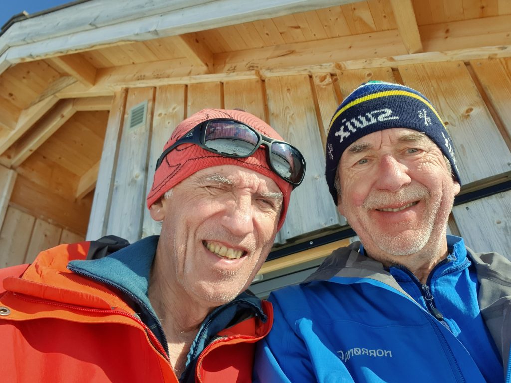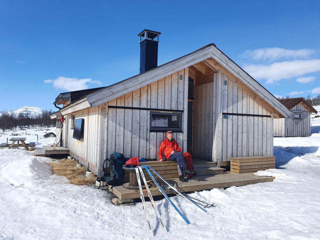 Per har skadet benet etter en fallulykke på tur. Så kun Odd og Knut startet en runde på fire dagers vårskitur 18. mars og besøkte flere av hyttene i området. Vi har hvert år tatt en vårtur helgen før palmesøndag, men da påsken i år er langt ut i april og det er lite snø, dro vi i mars. Vi satset på hytte til hyttetur på fjellski uten feller og med lett sekk.