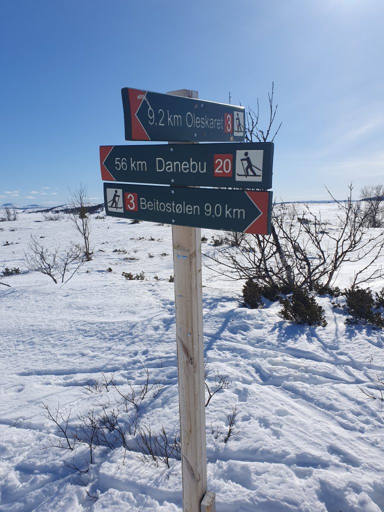 Fra Titrebu gikk skituren forbi fjellet Keiseren, over Persvannet og ned til Innbue ved det store oppdemmede vannet øst for Skaget. Etter te og sjokolade gikk vi over vannet til demningen helt syd. På grunn av lite snø var det i 2025 ikke blitt kvistet i Langsua nasjonalpark, så vi gikk etter kart og kompass.