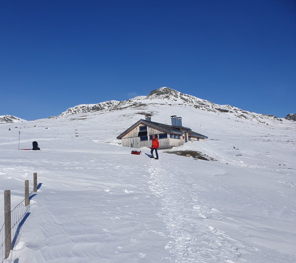 Heldige var vi som fikk hele DNT-hytta Storeskag for oss selv etter en overnatting på den overfylte Storkolvbua natten før. Heddahytta ligger under fjellet Skaget, som er den høyeste toppen i Langsua med sine 1685 moh.
